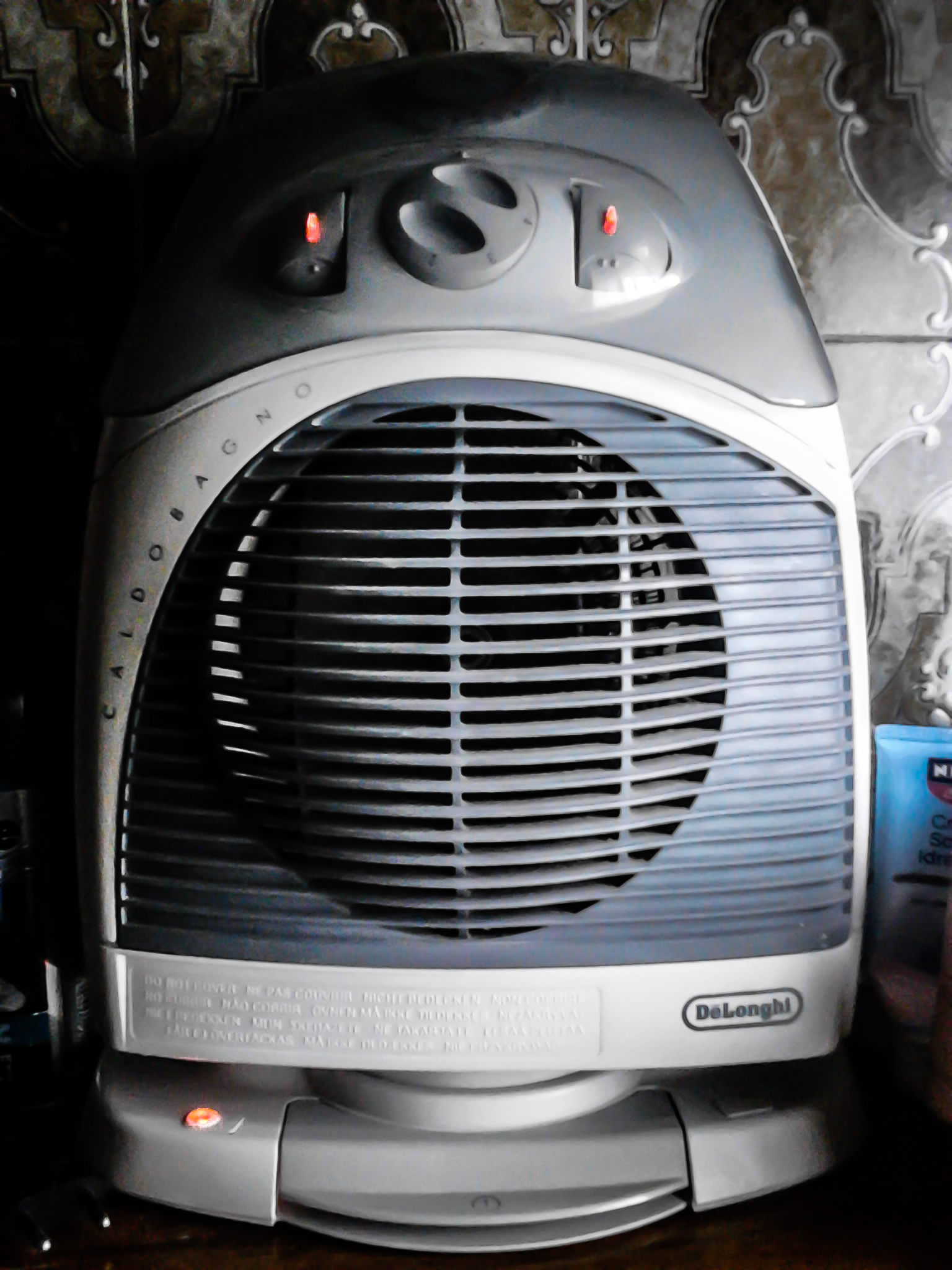 Mi ci piazzo davanti, le mani sul volto e per un po’ gli occhi li tengo chiusi. Poi, comincio a guardare attraverso la fessura che ho lasciato tra le due mani, fissando la luce rossa accesa su quel bottone di plastica, con i bordi delle dita tutti sfuocati, ringraziando di avere un rovente e vulcanico Caldobagno trattato bene e che ‘funziona ancora perfettamente nonostante l’età’, sapendo che da ora in avanti i secondi, i minuti, i giorni, le settimane, i mesi e gli anni saranno sempre più freddi, come una nuova piccola era glaciale.